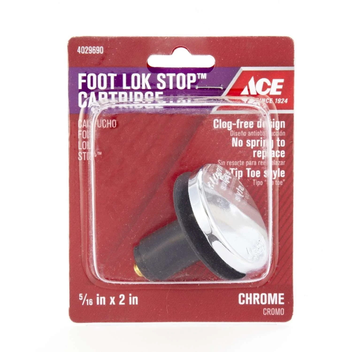 Ace Foot Lok Stop Cartridge 5/16 In. Polished Chrome Tub Stopper