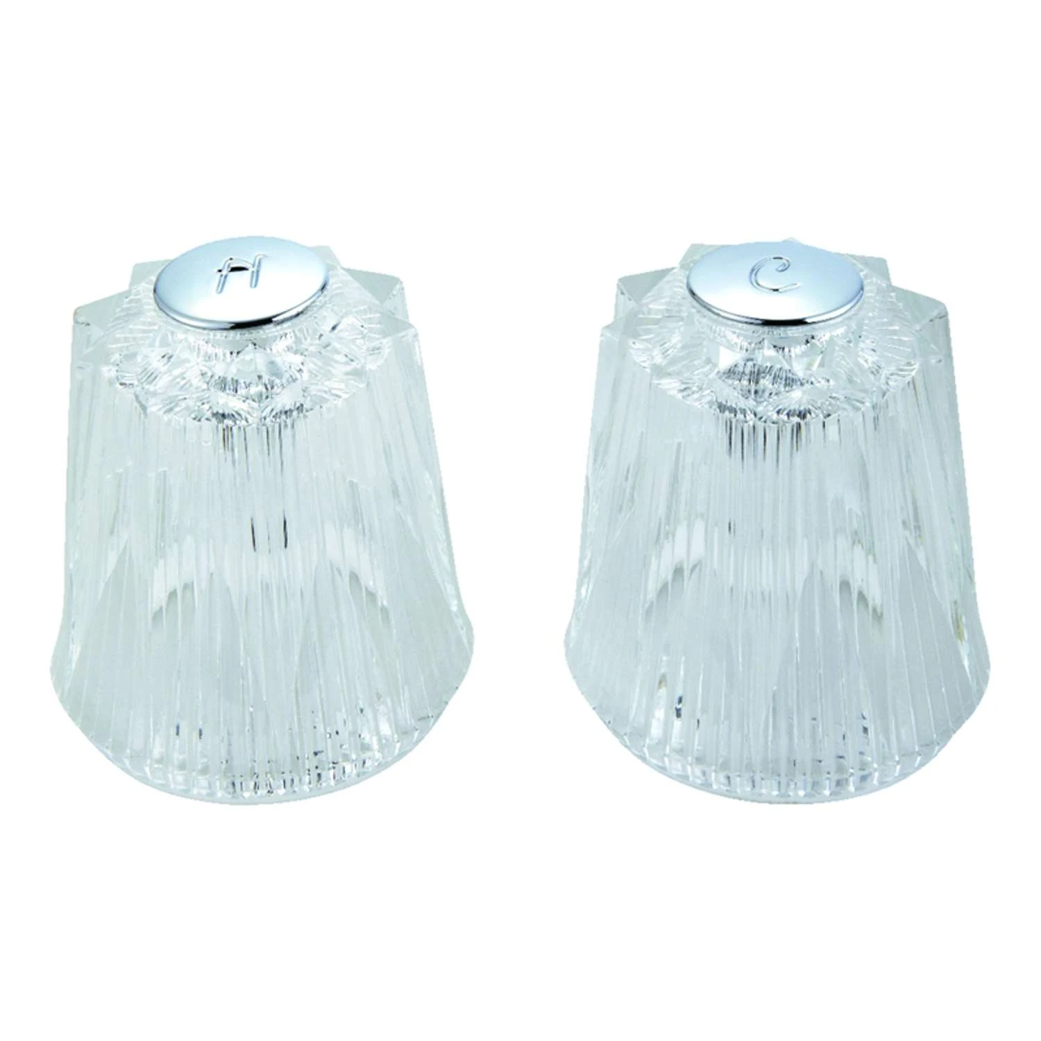 Update the overall appearance of your bathroom with the Ace Large Acrylic Handles for Price Pfister. Replacing leaky, worn-out handles will help restore your faucet to “like new” condition. It features an acrylic construction that will provide durability. The universal fit is compatible wih Price Pfister Windsor style lavatory faucets.Durable acrylic constructionDesigned to fit price pfister windsor faucetsEasy to use