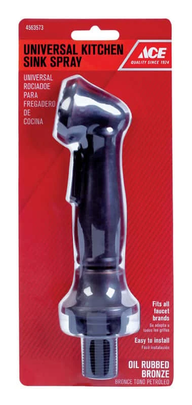 Update your current side spray with this premium updated look in Oil Rubbed Bronze. The Ace Side Spray has a versatile design and fits various faucet brands. It provides a high pressure directional power spray with a front cushioned thumb-applied trigger action. It offers a patented C-Clip for a quick connection. The plastic construction provides durability and reliable performance.Easy to install with little to no tools requiredConstructed of durable plastic for strength and reliabilityProvides high pressure directional power sprayingPatented c-clip provides connection to side spray in secondsFront cushioned thumb-applied triggerVersatile fit across most Moen, Delta and Kohler faucetsPremium design that works with any decorating styleEasy-to-clean spray head which will prevent mineral buildup