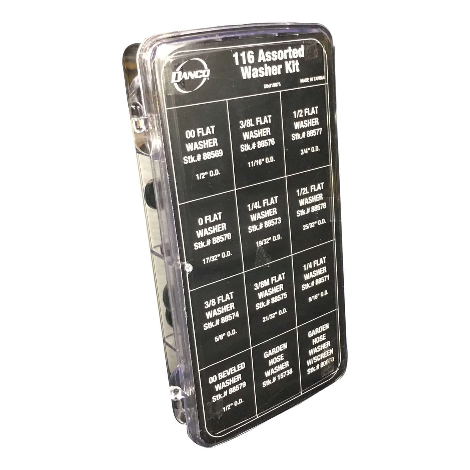 | What's Included | Assortment of Washers (also garden hose washers) with Trade Sizes of: 00, 0, 1/4, 1/4L, 3/8, 3/8M, 3/8L, 1/2, 1/2L |