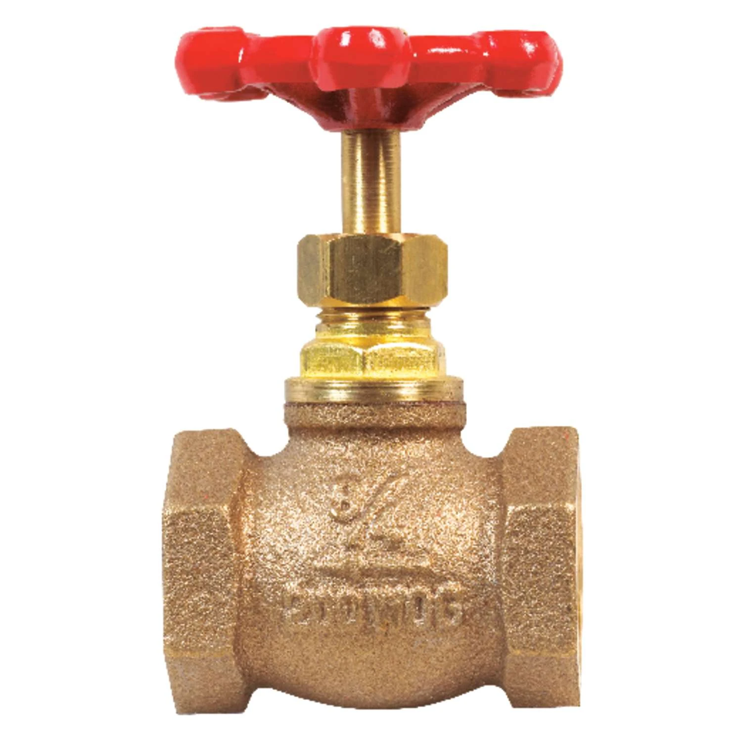 The 3/4 inch low lead globe valve rising stem has bronze to bronze seat construction. It is manufactured to include not more than 0.25 weighted average lead content on wetted surfaces. 200 PSI water, oil or air working pressure.Large flow areaHeavy six point cast iron handleThreaded ends comply with ANSI B2.1Rising stem for positive open and close operation