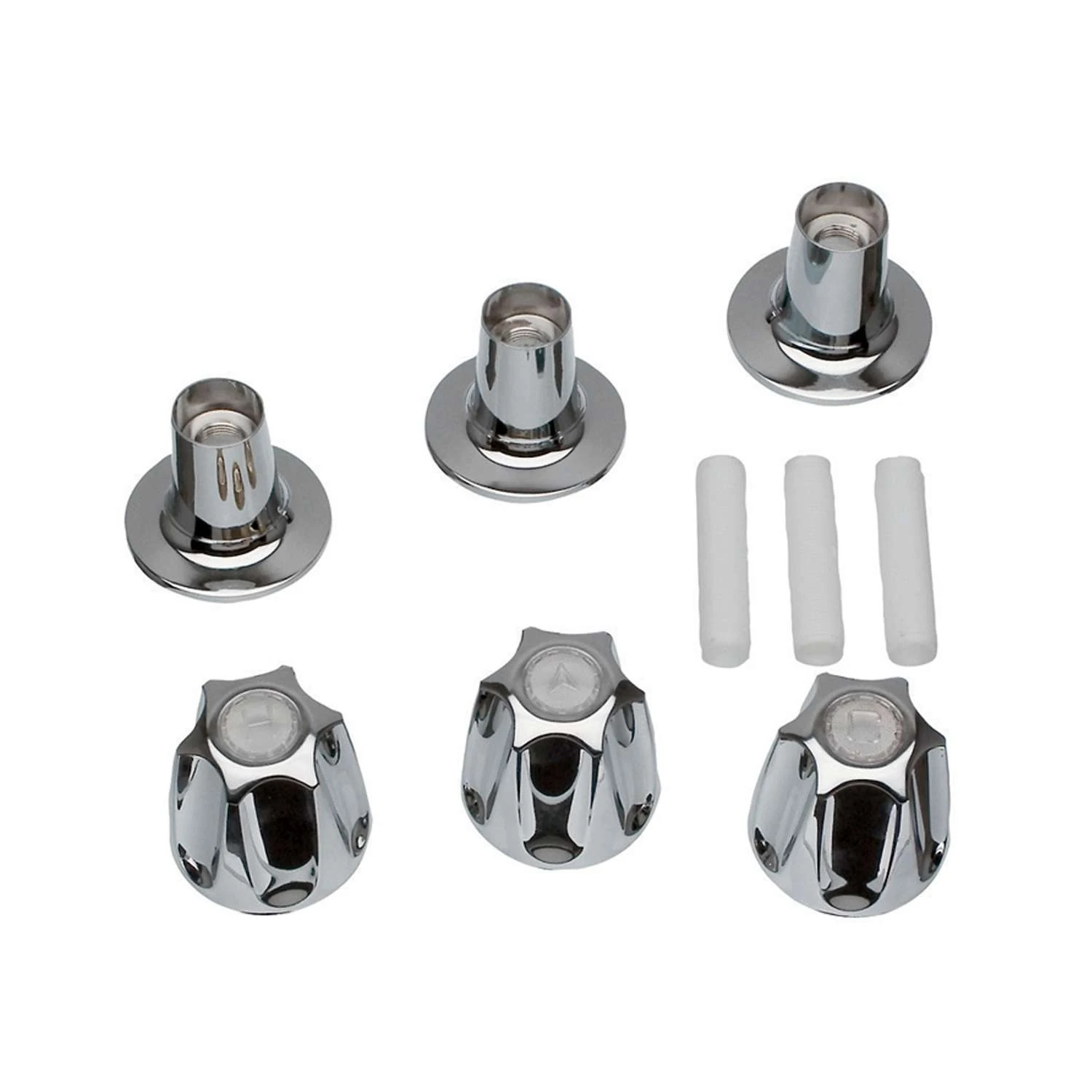 | What's Included | (3) handle flanges, (3) flange nipples and (1) each hot, cold and diverter handle |