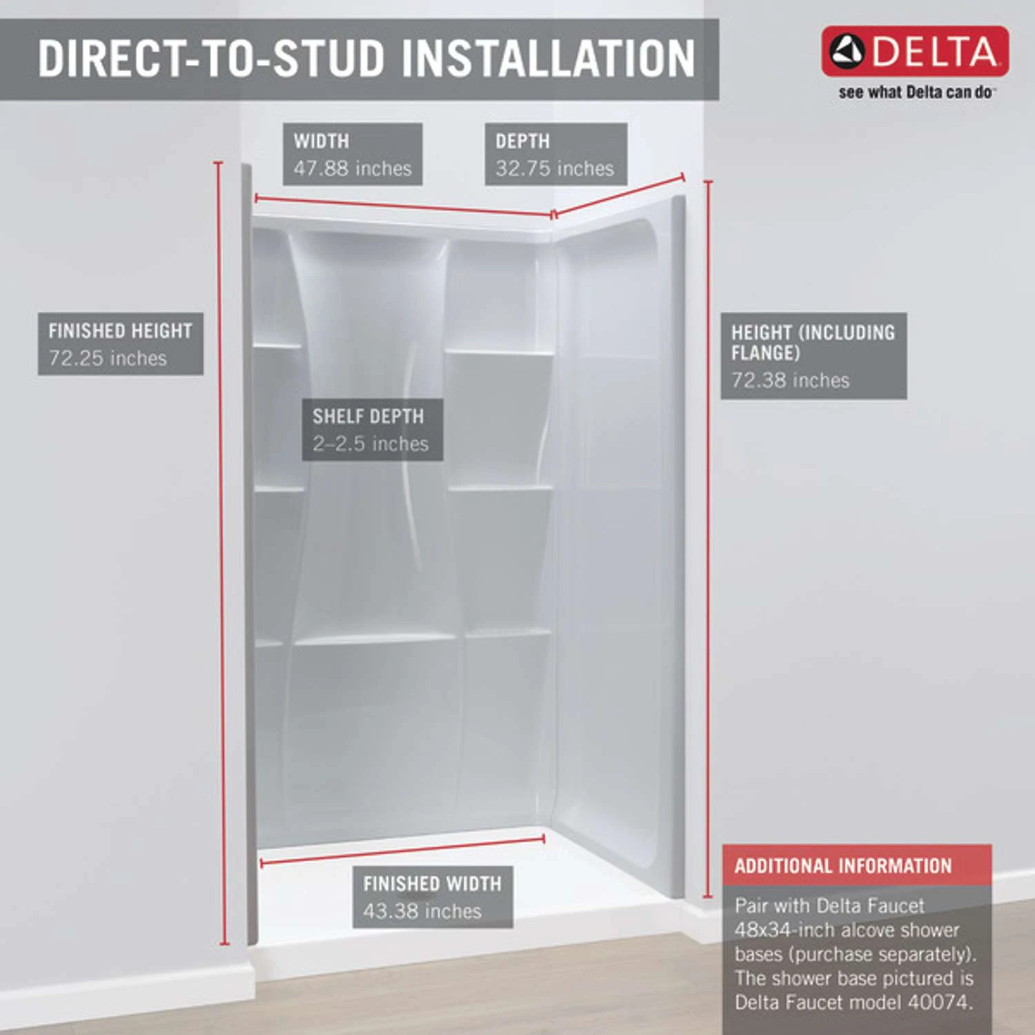Be the first to review “Delta 74 In. H X 34 In. W X 48 In. L White Bath And Shower Surround” Cancel reply