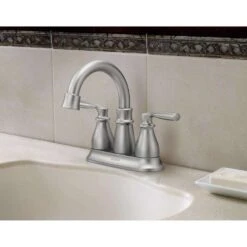 Moen Genta Brushed Nickel Two-Handle Bathroom Sink Faucet 8 In.