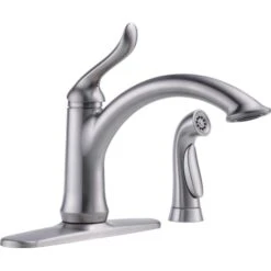 Delta Linden One Handle Stainless Steel Kitchen Faucet Side Sprayer Included