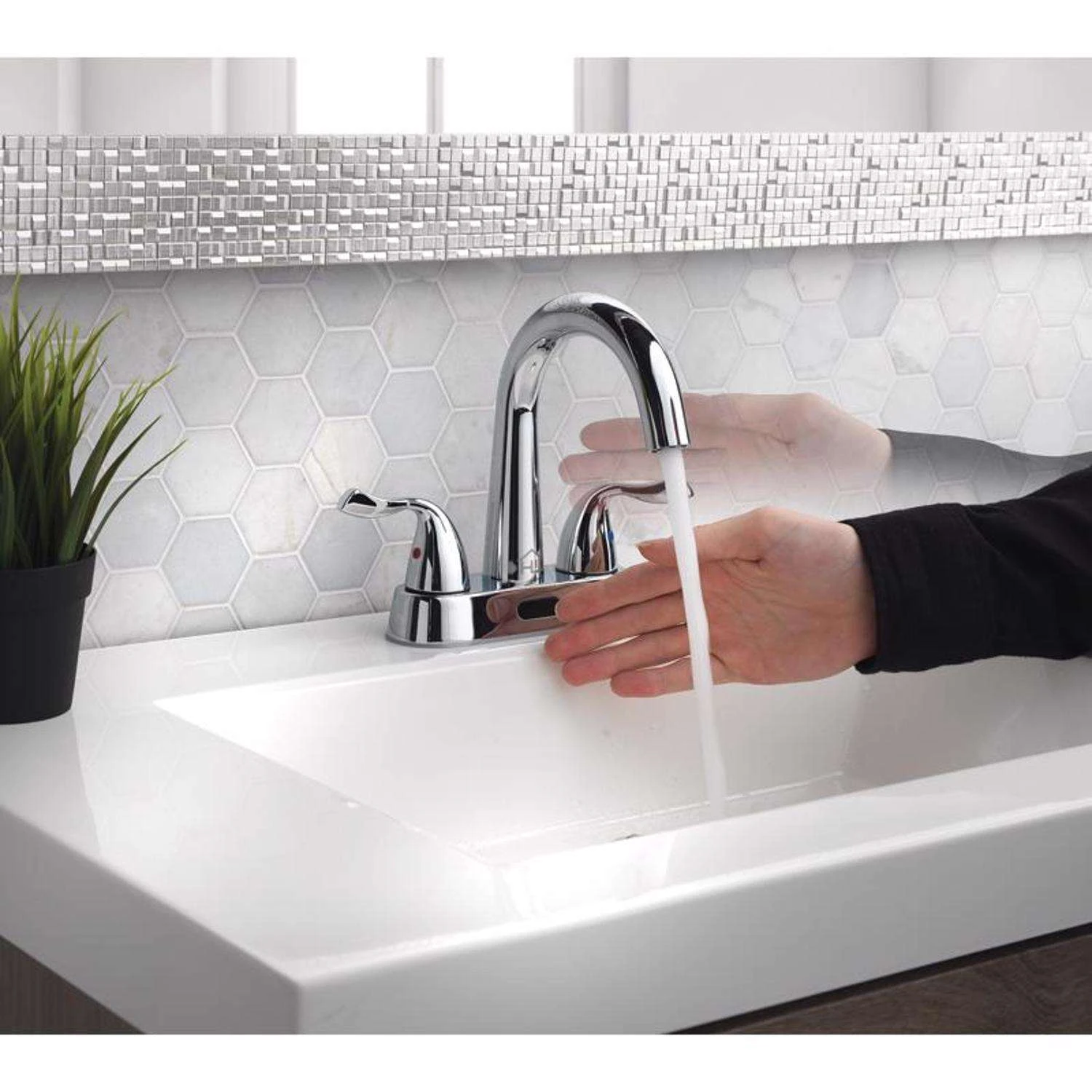 Homewerks Chrome Motion Sensing Centerset Bathroom Sink Faucet 4 In.