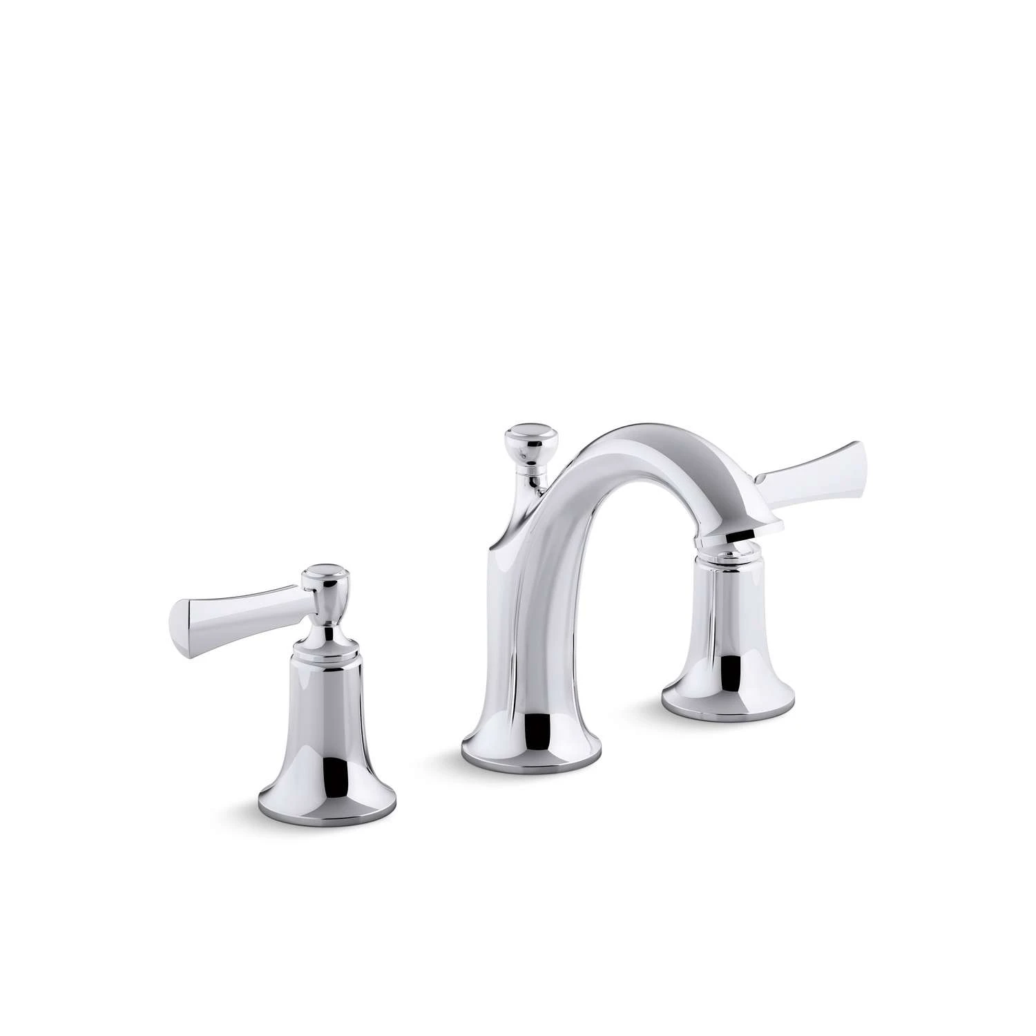 The Elliston collection is the perfect complement to traditional bath decor with its classic artisan style and unique forged look. This water-saving widespread bathroom sink faucet features lever handles for precise water control. Easy-to-install and leak-free UltraGlide valves provide durability.Two-handle widespread bathroom sink faucet for 8 in. – 16 in. centersKohler ceramic disc valves exceed industry longevity standards for a lifetime of durable performance *Laminar flow controls deliver a graceful stream while conserving waterPremium material construction for durability and reliabilityKohler finishes resist corrosion and tarnishing