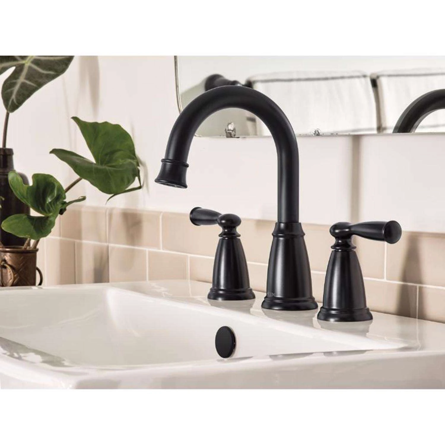 The Banbury collection highlights a timeless nostalgia for Traditional versatility and sets a tone that is both classical and sensible. This subtle design is elegant and, with its round bell accents, reflects the sophisticated values of Traditional homeowners. Third-party certified to WaterSense, ASME A112.18.1/CSA B125.1 and all applicable requirements referenced therein. Certified to NSF 61/9 & 372. Products marked with 1.2 gpm are compliant with California water efficiency regulations. Complies with California Proposition 65 and with the Federal Safe Drinking Water Act. 1234 cartridge design. Nonmetallic and stainless steel material cartridge.Water usage is limited to these maximum flow rates as indicated by the corresponding product markingsMatte Black Finish is the perfect complement to modern spacesTwo-handle lever makes it easy to adjust the waterFaucet handles can be installed between 8″ to 16″ for a more customized widespread installationFeatures Duralock quick connect system for easy installationAerated flow is ideal for everyday bathroom tasks, like brushing teeth and washing handsPush-down drain assemblyMeets EPA WaterSense criteria to conserve water without sacrificing performanceMetal construction with various finishes identified by suffixHot side counterclockwise to open (clockwise to close), Cold side clockwise to open (counter-clockwise to close)