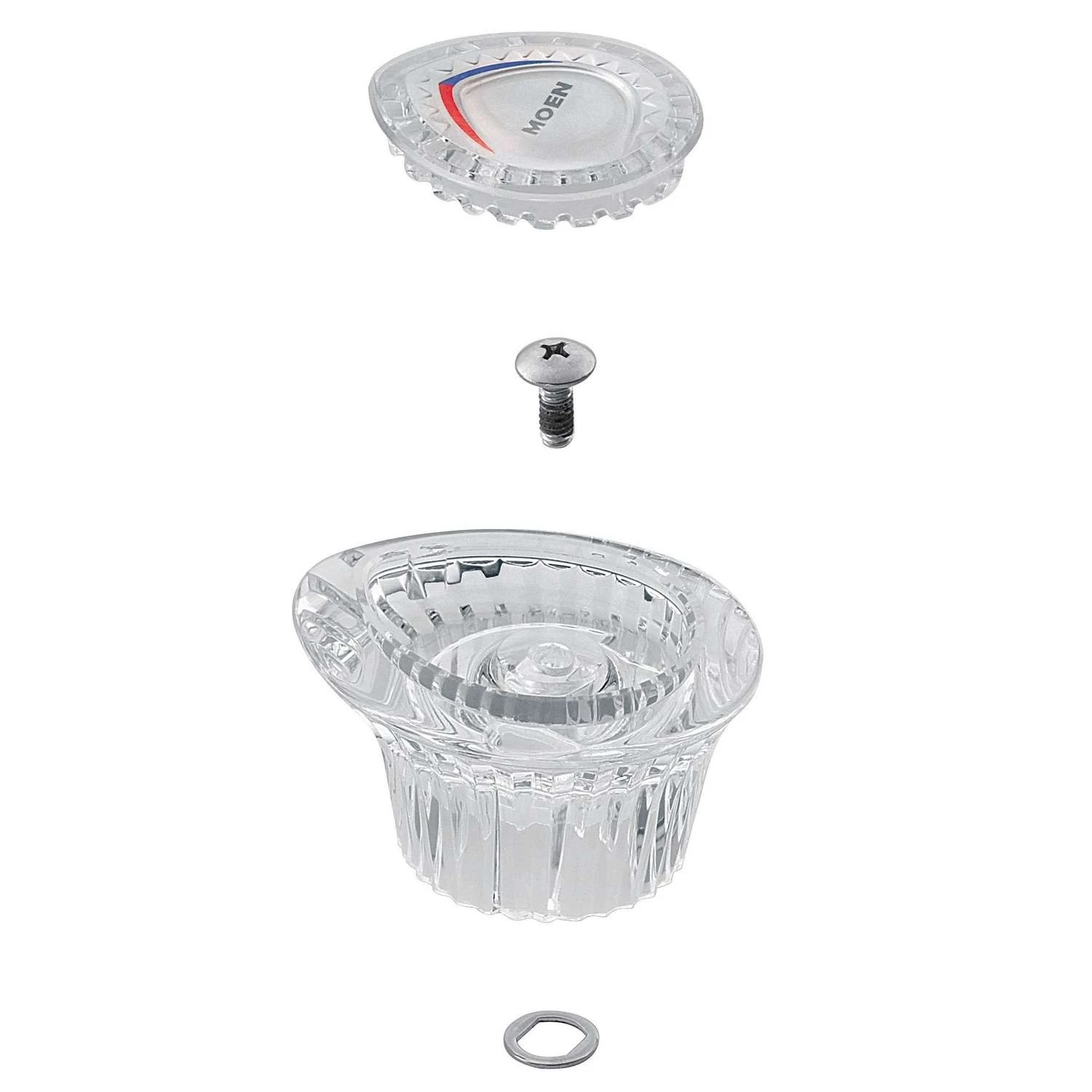 The MOEN Chateau Lavatory Replacement Knob Handle Kit is designed to fit MOEN one-handle lavatory faucets. The knob is made of durable acrylic and has a clear design. Hardware and installation instructions included.Clear acrylic knobReplacement knob fits 1-handle bathroom sink faucetsIdeal for repairing problematic faucets instead of replacing themHardware includedHandle cap included