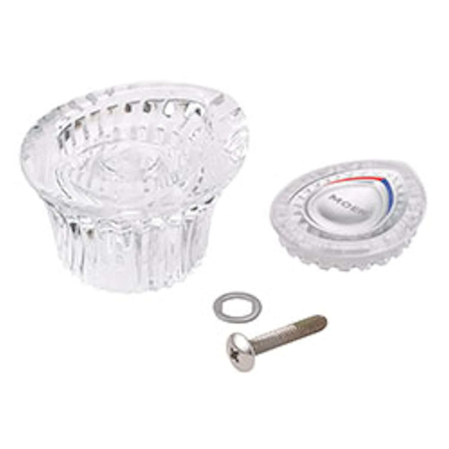 From finishes that are guaranteed to last a lifetime, to faucets that perfectly balance your water pressure, Moen sets the standard for exceptional beauty and reliable, innovative design. Bring elegance to your home with premium selections from Moen. From the sophistication of period traditional to the streamlined refinement of minimalist contemporary, you’ll find a host of amazing ways to express your style with products from Moen.Clear knob with white and chrome insertFits Chateau 1H tub or showerHardware includedMoen genuine part