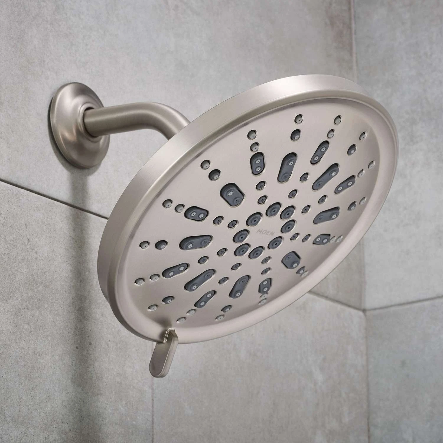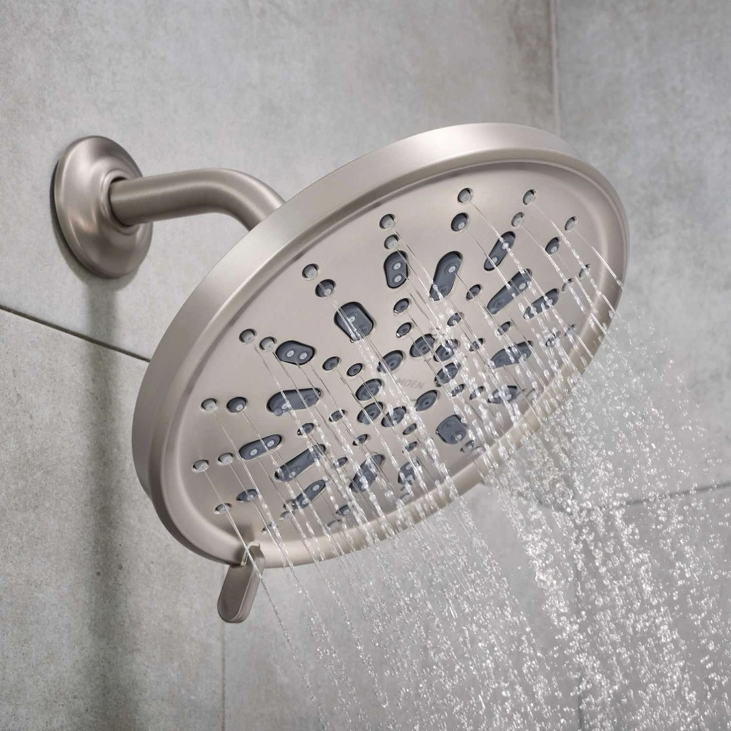 The five-function, transitionally styled Enthrall rainshower provides all-over water coverage for the ultimate showering experience. A simple shift of the dial offers the choice of five spray options ranging from deep massage to concentrated rinse.Spot Resist brushed nickel finish resists fingerprints and water spots for a cleaner looking bathGenerously sized 9″ diameter rainshower for exceptional water coverageFive-function full rainshower; deep massage; concentrated rinse; relaxing massage; invigorating sprayMeets EPA WaterSense criteria to conserve water without sacrificing performanceEasy wall-mount installationBacked by Moens Limited Lifetime Warranty
