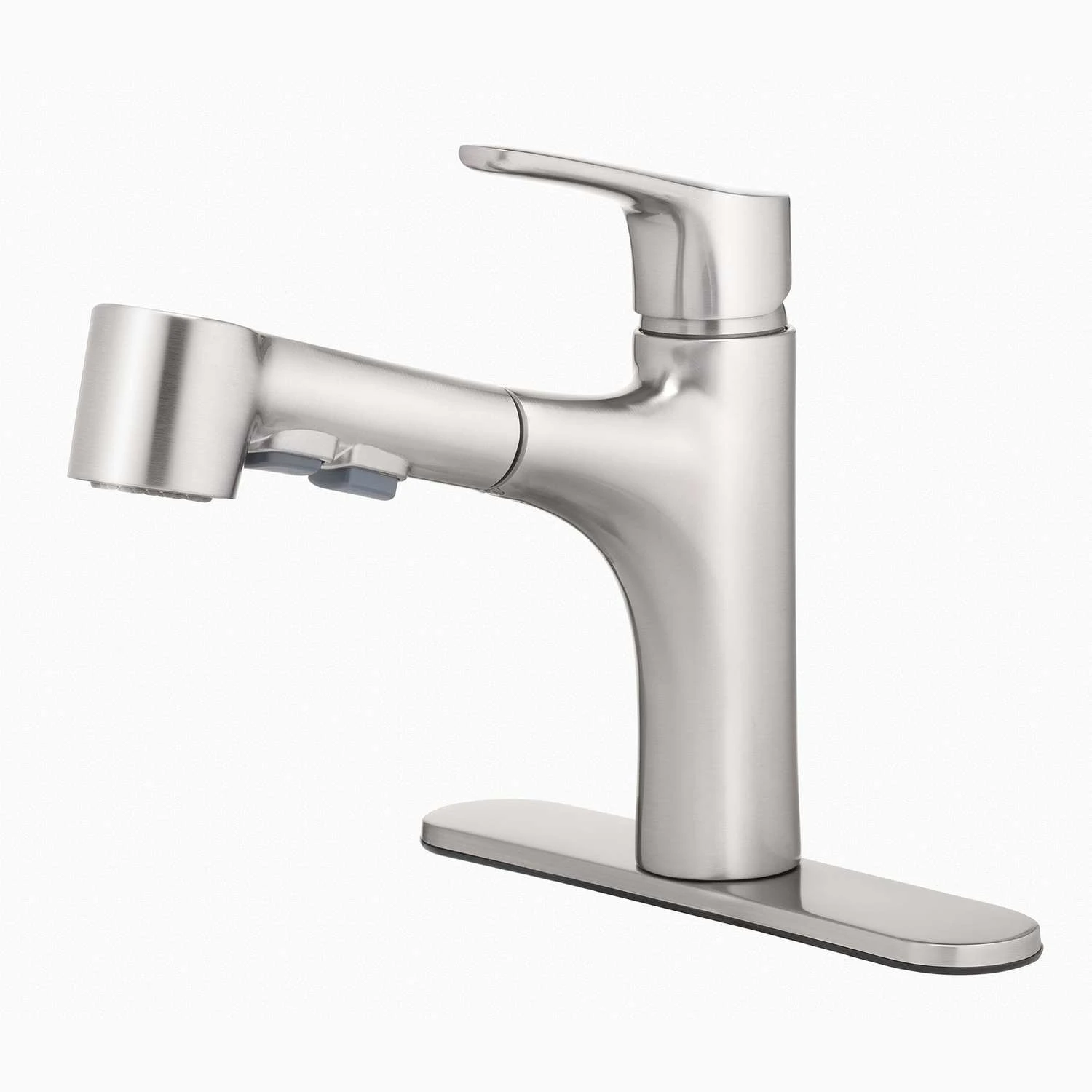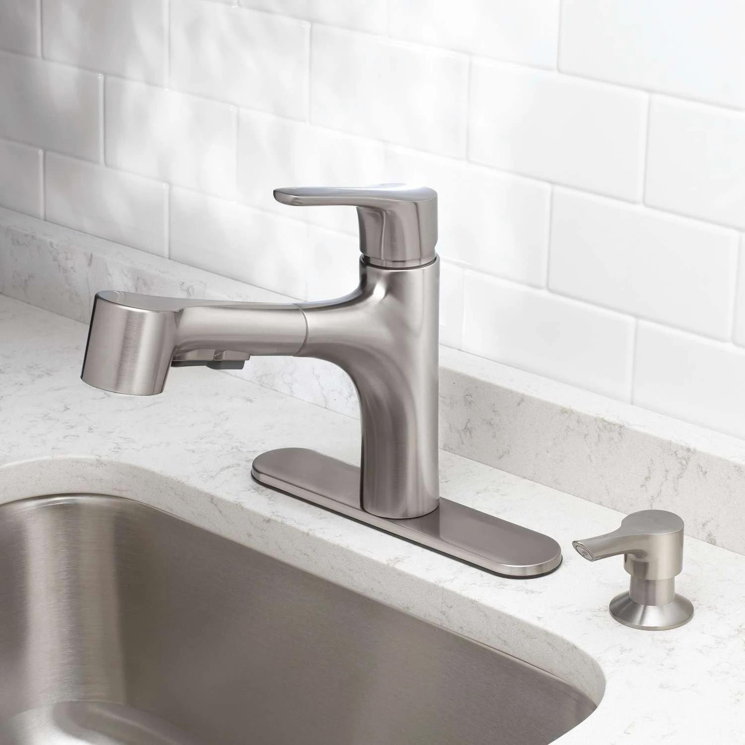 OakBrook One Handle Brushed Nickel Pull Out Kitchen Faucet