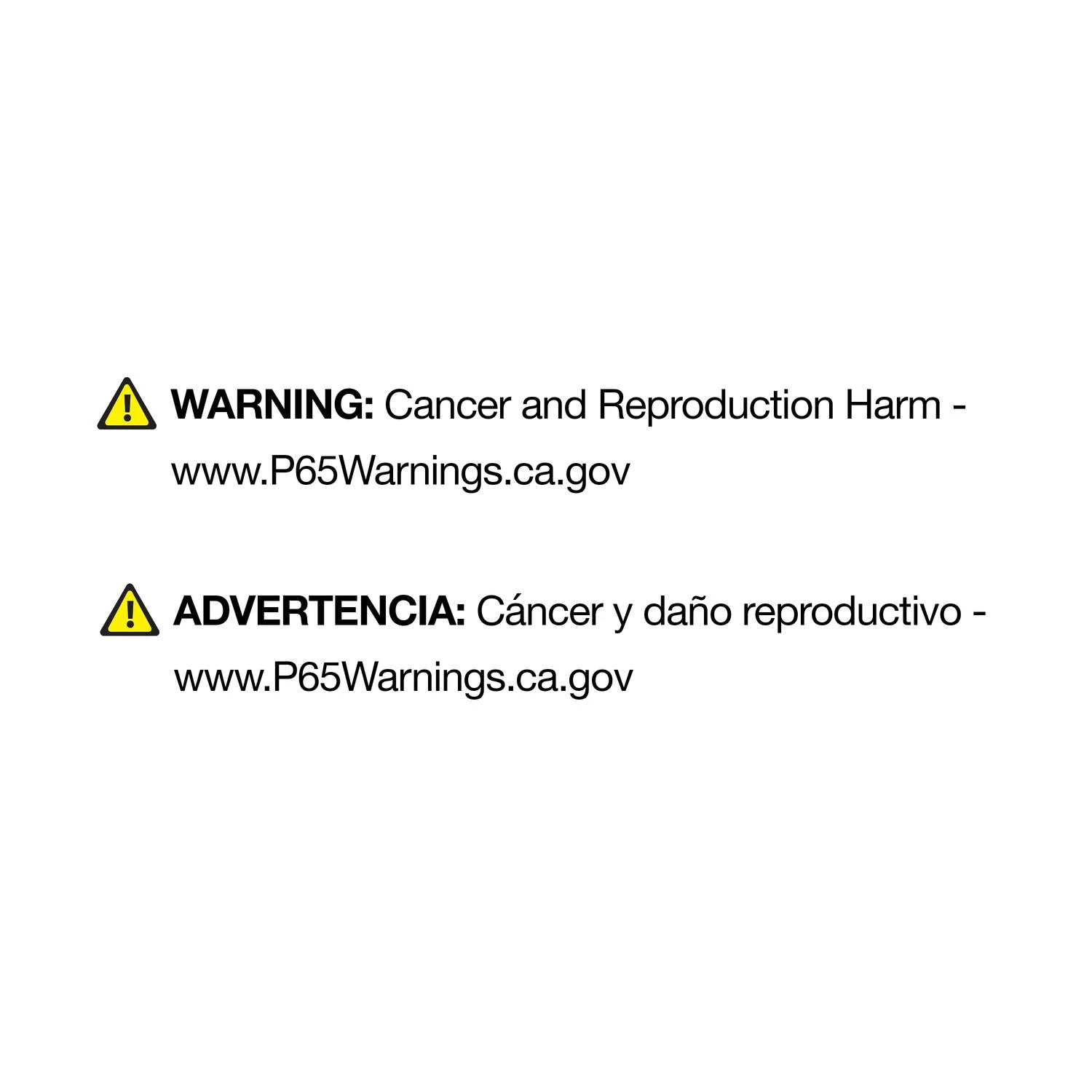 | Proposition 65 Warning | WARNING: Cancer and Reproductive Harm – http://www.P65Warnings.ca.gov |