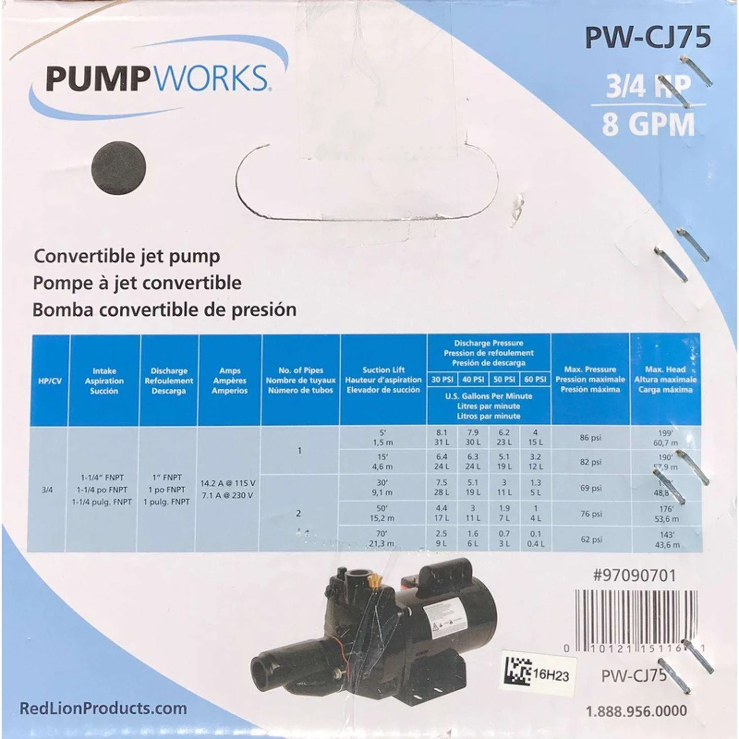 Pump Works 3/4 HP 8 Gph Cast Iron Convertible Jet Pump