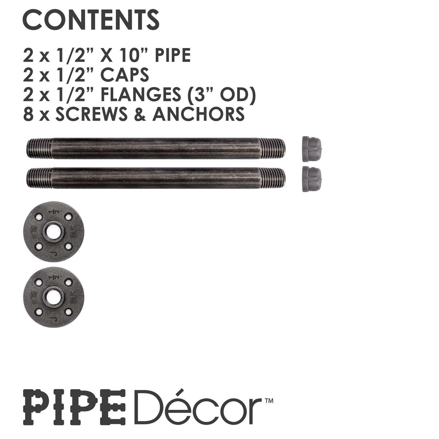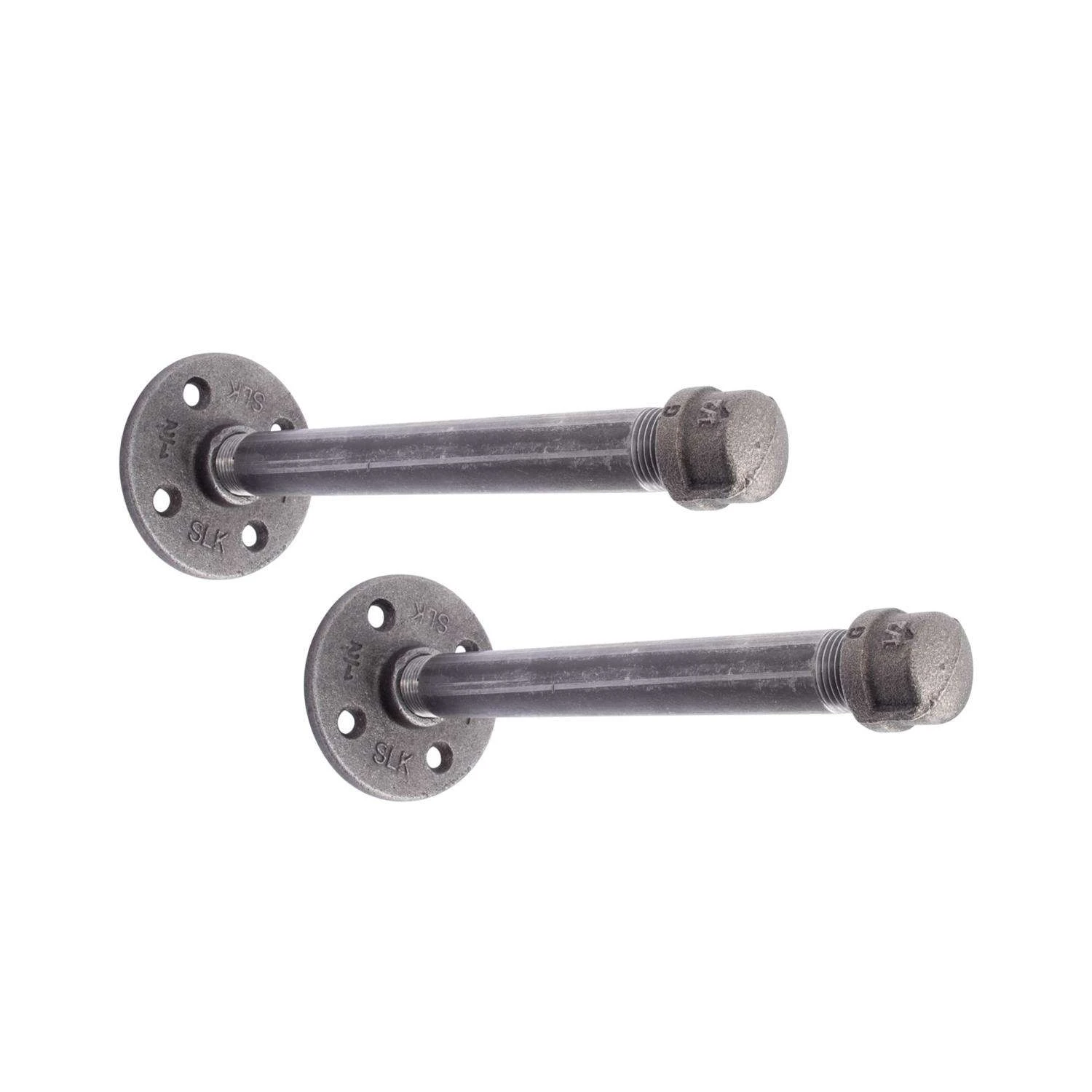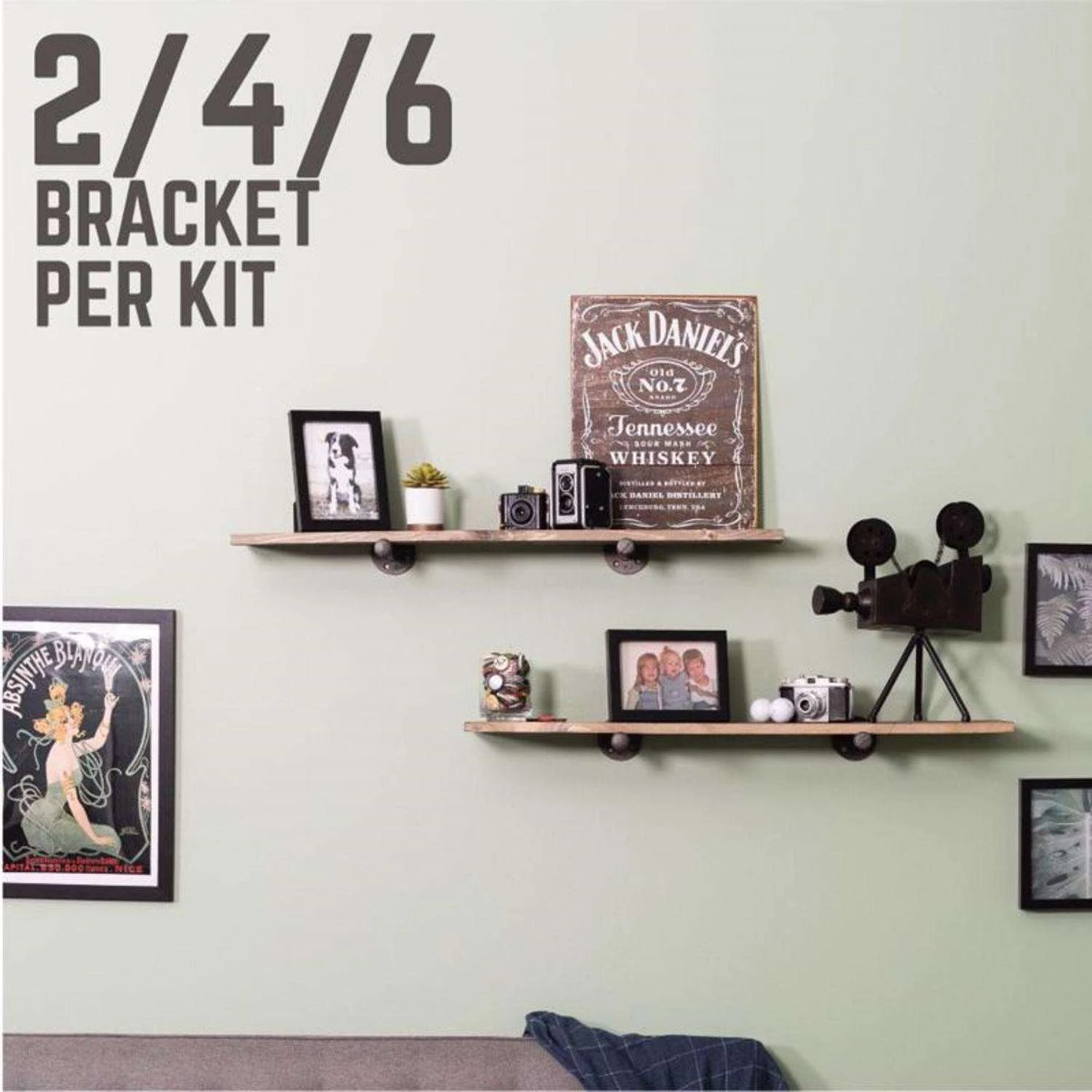 Comprised of genuine steel pipes and malleable iron flanges, these heavy-duty wall shelf brackets make an excellent addition to any room in your home. These aren’t your typical DIY wall shelves industrial-grade pipes allow you to create a project that will stand the test of time. Pair with any shelf top for a statement piece that can support books, trinkets, and more. Each piece in this industrial shelf bracket kit is the standard size and weight used in industrial pipe applications. Don’t accept cheap substitutes available in decorative materials. Because our products are made from authentic malleable iron and black steel, they require cleaning and sealing prior to use. All of our pipes come coated with a protective oil to prevent rust during transit. Step-by-step cleaning instructions are included in every order. This pipe decor kit comes with all necessary pipes, fittings and hardware needed for assembly.All pipes and fittings are made to meet American Society of Mechanical Engineers and American Society for Testing and Materials standardsReal industrial pipe will stand the test of timeFittings are industrial grade malleable ironSuits any style vintage, rustic, industrial, modern farmhouse and moreEasy to clean and sealBrackets only and shelf top not included