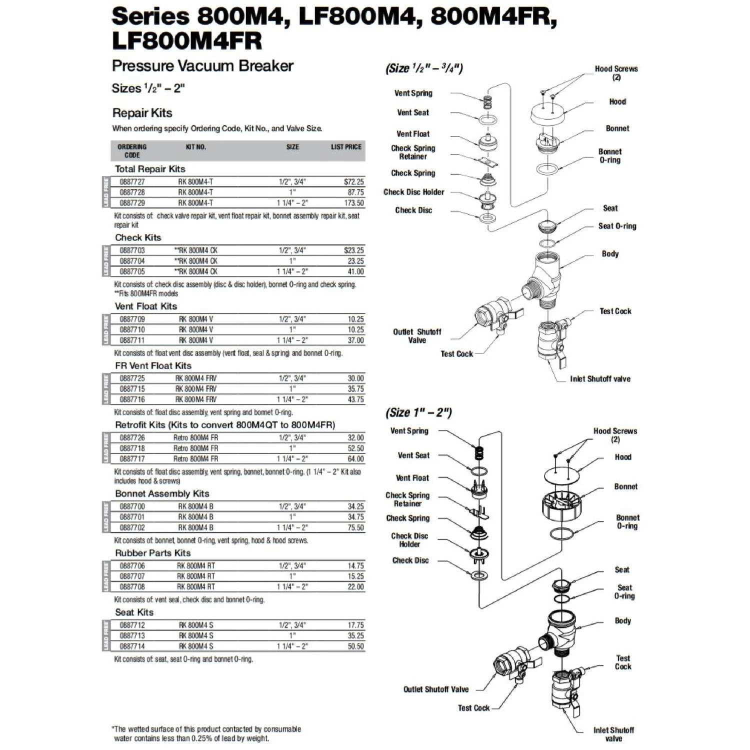 | What's Included | Float Vent, Disc Assembly, Seal and Spring and Bonnet O-Ring |